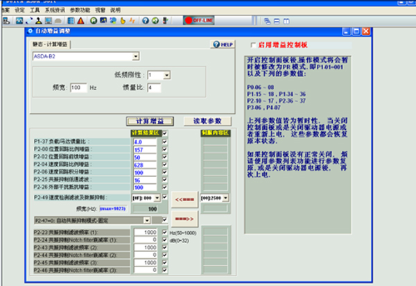利用臺達B2伺服強大的伺服調(diào)機軟件,方面增益的調(diào)整與設(shè)置。