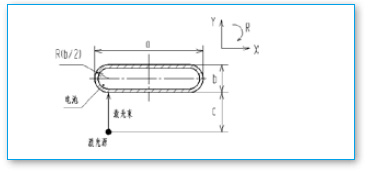 電池形狀由寬度a、厚度b決定,焊接時要求尺寸c保持恒定,即在激光束固定焦距上進(jìn)行焊接。電池裝在X、Y工作臺上,可由R軸帶動旋轉(zhuǎn)。另包括送料軸。根據(jù)以上要求和條件,確定鋰電池外殼激光焊接過程如下: