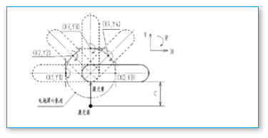 ■ X、Y軸沿“電池圓心軌跡”與R軸進(jìn)行順時針螺旋插補(bǔ)。