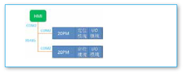 HMI通過RS485接口連接兩臺20PM,通過20PM的不同站號進(jìn)行訪問。