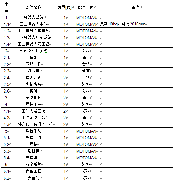 備注:循環(huán)時間計算是根據(jù)理論速度估算出來的,不作為交貨驗收依據(jù),實際循環(huán)時間需要根據(jù)現(xiàn)場焊接工藝的調(diào)整而調(diào)整的。