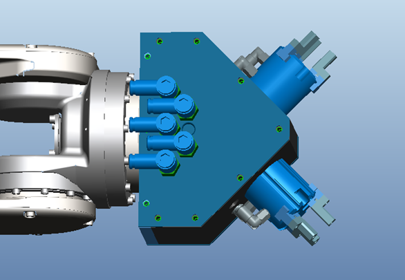 b) 目前工件與膨脹芯軸的間距為0.1mm,所選的氣抓重復(fù)定位精度為±0.01mm,為確保工件理論上的順利裝入,六關(guān)節(jié)機(jī)器人的重復(fù)定位精度應(yīng)<±0.04mm。