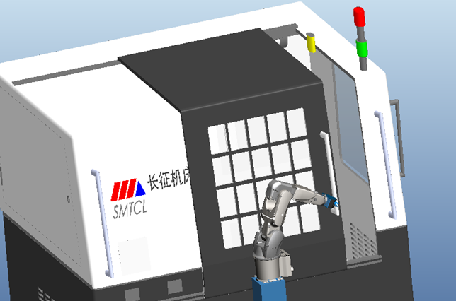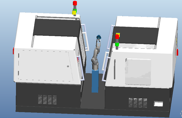 e) 方案二減小目前機(jī)床的間距為700mm甚至更小。優(yōu)點(diǎn)是設(shè)備投入小,缺點(diǎn)是不利于后期機(jī)械手和機(jī)床的維護(hù)。