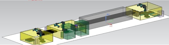 各工位均設(shè)置安全防護系統(tǒng)、界定機器人工作范圍。