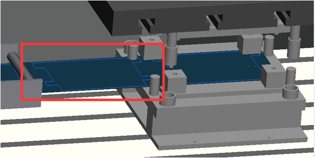 4) 工序2:凸臺成型;沖壓模具基本可以利用現(xiàn)有模具,只需旋轉(zhuǎn)180°裝配;可能需要調(diào)整抬模高度。同時薄膜面下。