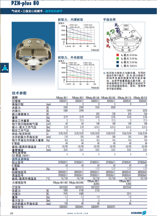 本次方案設(shè)計選用雄克氣爪PZN-plus 80-1-IS和雄克彈簧壓緊件A-PZN-Plus 80。PZN-plus 80-1-IS參數(shù)如下: