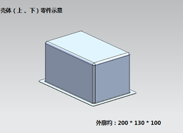 零件完成后外廓尺寸約為200mm X 130mm X 100mm,零件上有多處凸起、沉臺(tái)和孔,零件的加工需多序完成。另外上下殼體零件僅有細(xì)微差距、外形上大體一致、在產(chǎn)品裝夾和物流轉(zhuǎn)運(yùn)方面按相同方式考慮。殼體零件大致如右圖所示。