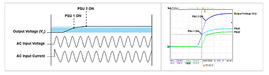 當(dāng)兩個電源串聯(lián)后,會出現(xiàn)一種可能,開機時間及上升時間短的電源會首先開機,這一現(xiàn)象稱為“隨機開機”。如圖6