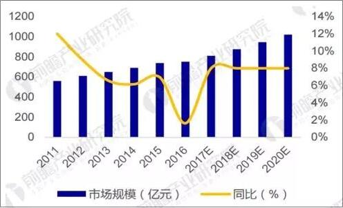 據(jù)前瞻產(chǎn)業(yè)研究院發(fā)布的《低壓電器行業(yè)產(chǎn)銷需求與投資預(yù)測分析報(bào)告》數(shù)據(jù)顯示,截止2016年底,低壓電器市場規(guī)模達(dá)到750億元。2017年低壓電器市場規(guī)模預(yù)計(jì)在810億元左右,同比增長8%。低壓電器產(chǎn)品需求受各行業(yè)投資驅(qū)動(dòng),但與固定資產(chǎn)投資相關(guān)。受固定資產(chǎn)投資回暖,及下游發(fā)電、工業(yè)、房地產(chǎn)等市場高速增長驅(qū)動(dòng),預(yù)計(jì)低壓電器行業(yè)產(chǎn)值在2018-2020年將維持8%左右的增速。