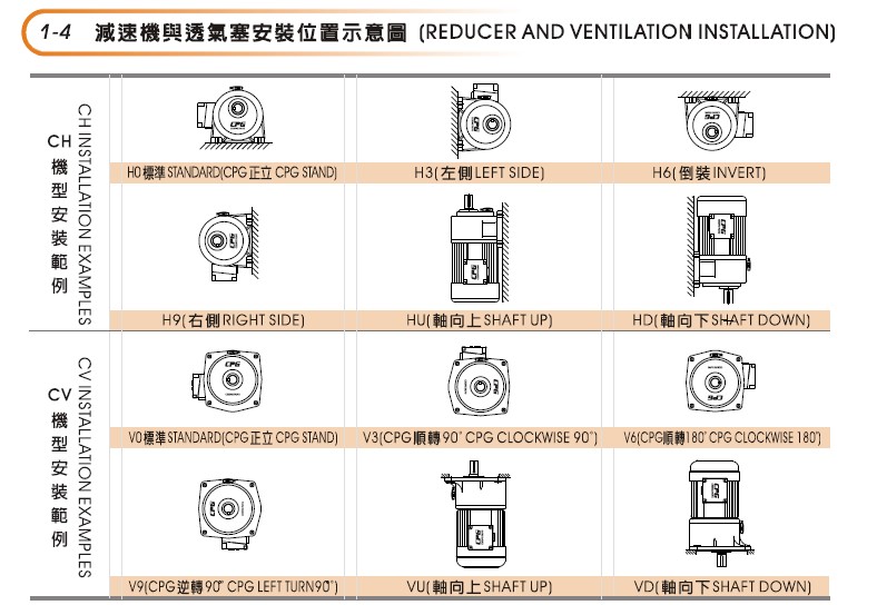城邦減速電機(jī)提供兩種安裝方式,一種CV系列:法蘭式安裝,又叫立式安裝。一種CH系列是:底座安裝,又叫臥式安裝。說明,法蘭安裝,減速機(jī)的安裝面和減速機(jī)的輸出軸是垂直關(guān)系。底座安裝的減速機(jī)安裝面和減速機(jī)的輸出軸是平行關(guān)系。選擇哪一種安裝方式需要工程師根據(jù)自身機(jī)械機(jī)構(gòu)的特點(diǎn)由于確認(rèn)。