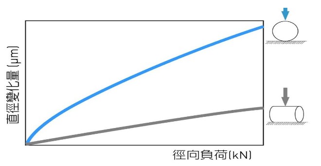 圖2 滾柱與滾珠的剛性比較