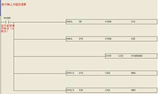 提升機下行過程與上行類似,圖2為用WPLSoft軟件編寫的部分PLC程序。