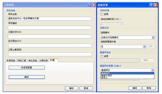 同理,其他的從機(jī)屏也是同樣的操作,這樣就可以把主機(jī)屏的畫(huà)面同步過(guò)來(lái)了。而且畫(huà)面一致,操作流暢,實(shí)時(shí)性好,而且沒(méi)有從機(jī)屏數(shù)量的限制,理論上可以實(shí)現(xiàn)無(wú)限從機(jī)屏數(shù)量。當(dāng)然該現(xiàn)場(chǎng)控制,要求每個(gè)人都可以獨(dú)立操作屏上的畫(huà)面,不需要同步控制,這個(gè)功能海為開(kāi)發(fā)人員也給技術(shù)工程師想好了,只要在云組態(tài)軟件(與HMI同一個(gè)軟件),工程 - 工程屬性 - 擴(kuò)展 - 高級(jí) - 畫(huà)面同步配置: