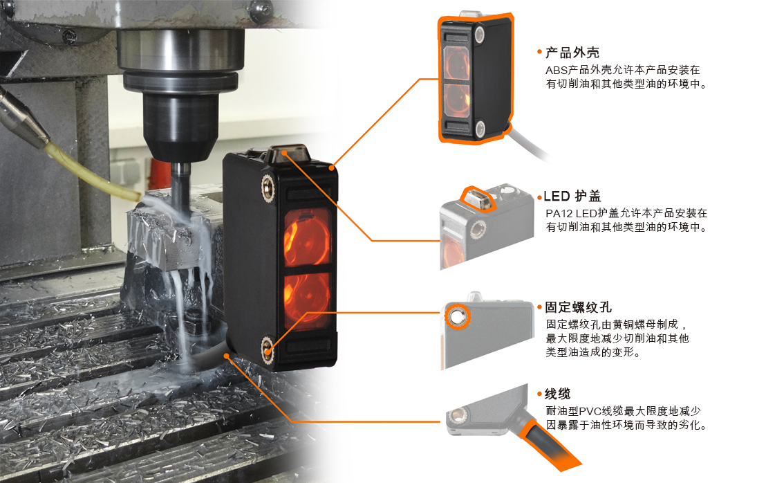 • 防油型光電傳感器 (針對汽車和機(jī)床行業(yè)進(jìn)行了優(yōu)化)