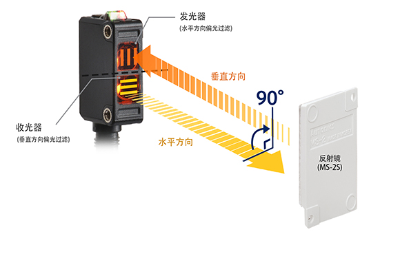 • 檢測物反射的光線將保持水平,因此不會(huì)被具有垂直偏振濾光片的收光器接收,可避免檢測誤動(dòng)作。