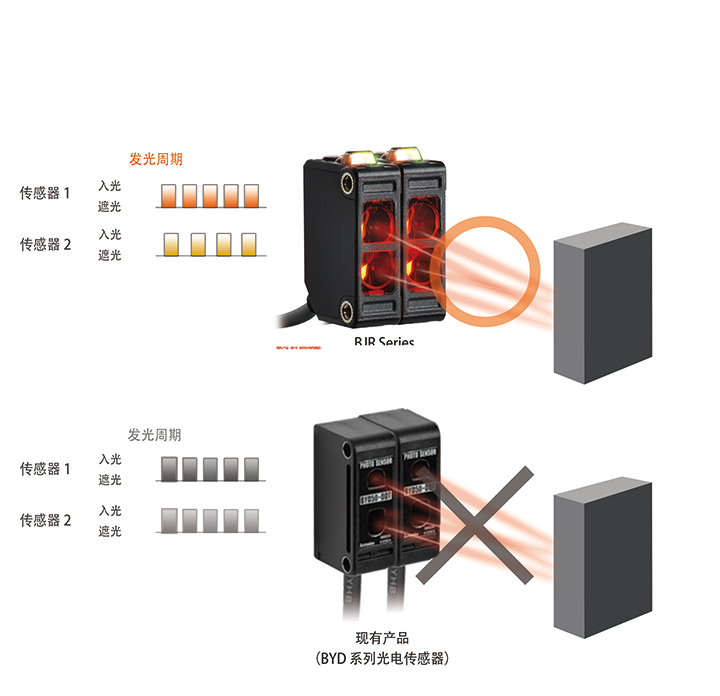 通過改變傳感器的發(fā)光周期,相鄰傳感器之間互不影響,可以并排緊密安裝。
