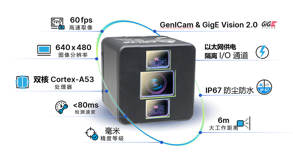 采用 Cortex-A53 雙核心處理器,可于相機(jī)中預(yù)先進(jìn)行部分圖像運(yùn)算,檢測速度小于 80ms