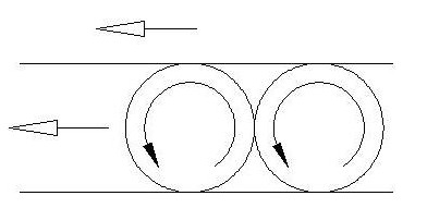 為了達(dá)成高速的應(yīng)用,線性滑軌的設(shè)計須使用滾動組件的循環(huán)系統(tǒng),以減小運行阻力,并提高其運行速度。由于線性滑軌的機(jī)械特性大都取決于滾動組件與滑塊、滑軌之間的接觸關(guān)系,除此之外,循環(huán)系統(tǒng)的阻力以及滾動組件相互之間的阻力大小,即是設(shè)計上主要可以改進(jìn)的部份。如圖3所示;相鄰的兩個滾動組件在運行時,其接近處的運動方向是相反的。若此處為接觸狀態(tài),則摩擦阻力將提高甚多,進(jìn)而大大影響其高速性能。